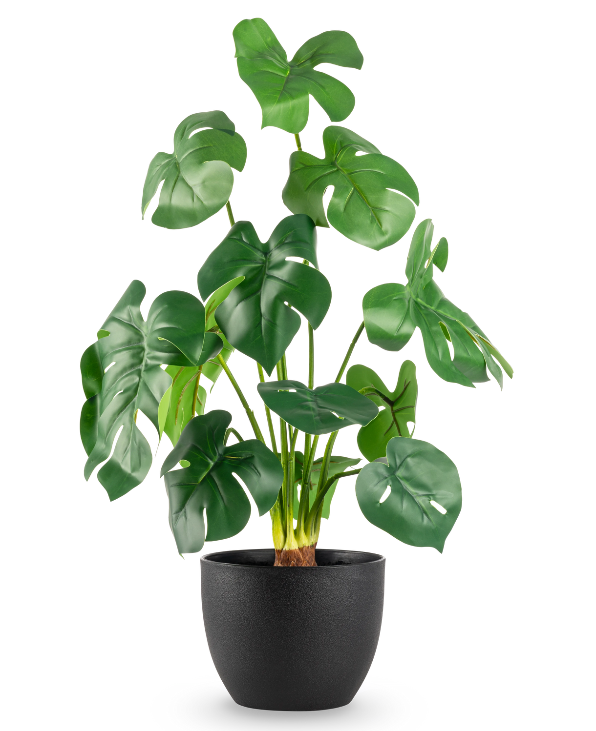 Monstera Artificiale 42 cm in Vaso Ornamentale Nero