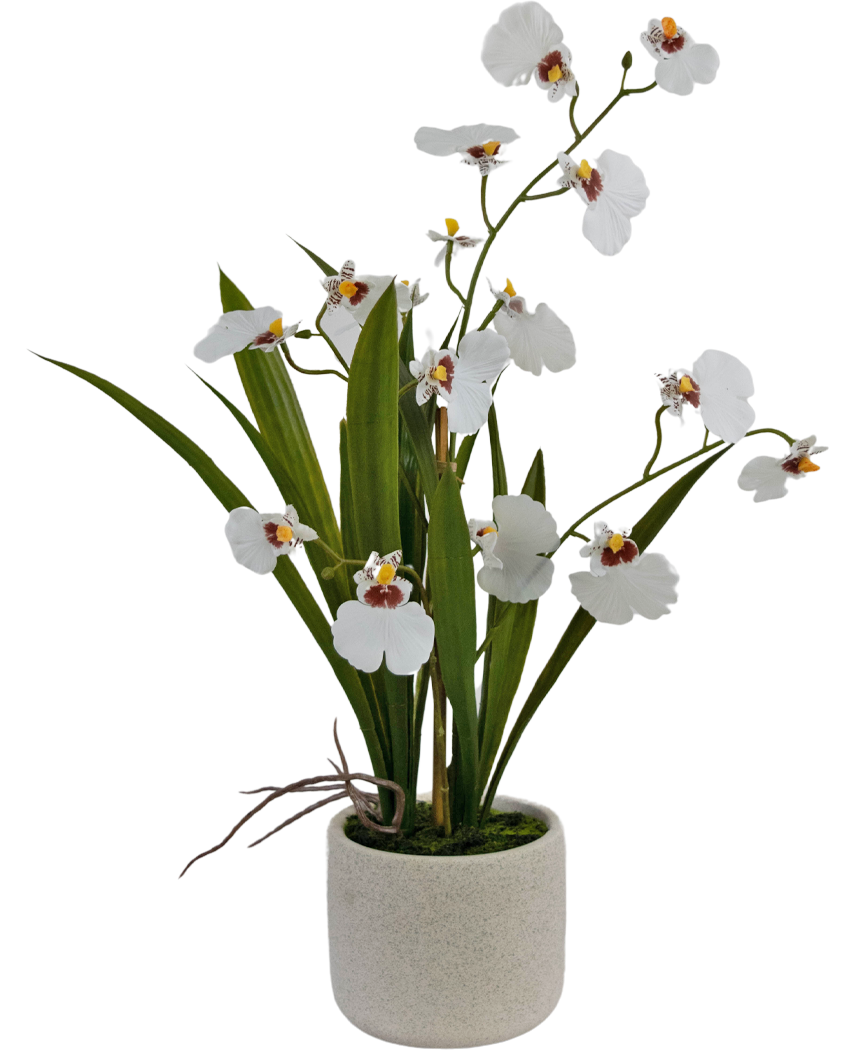 Scopri la bellezza senza tempo dell'Oncidium artificiale Real Touch, un'opzione elegante e sofisticata per arricchire qualsiasi ambiente. Questo affascinante fiore bianco, alto 48 cm, è progettato per imitare la realistica bellezza dei fiori freschi, senza la necessità di cure o manutenzione.