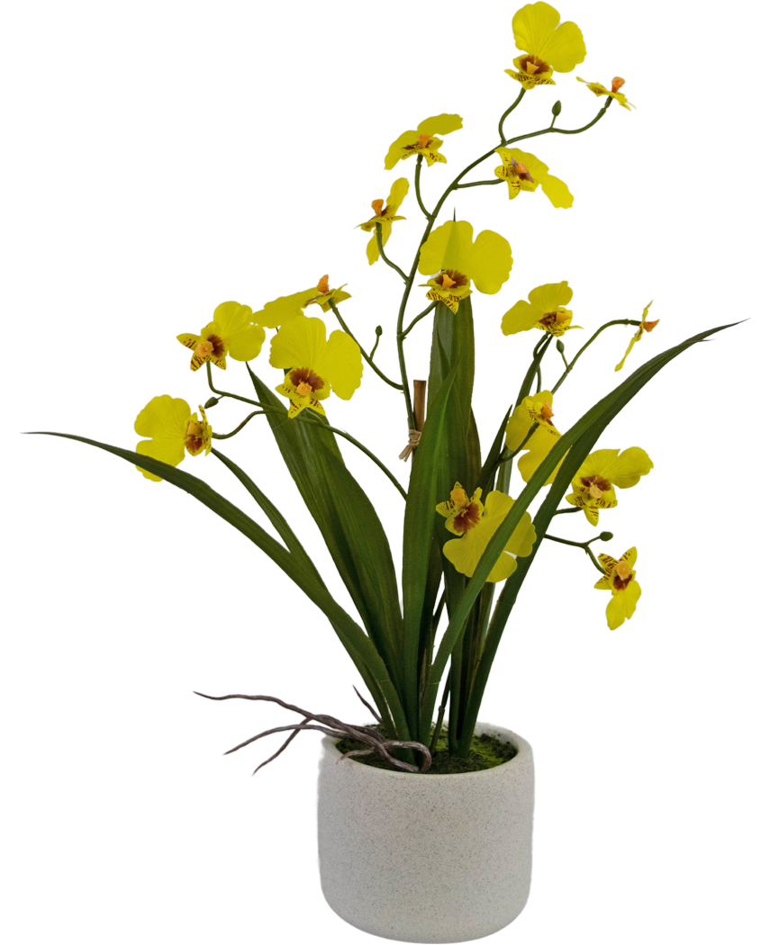 Scopri la bellezza senza tempo dell'Oncidium artificiale Real Touch, un'aggiunta elegante e raffinata alla tua casa o al tuo ufficio. Con un'altezza di 48 cm, questa splendida orchidea gialla non solo cattura l'occhio, ma porta anche un tocco di freschezza e vitalità in qualsiasi ambiente.