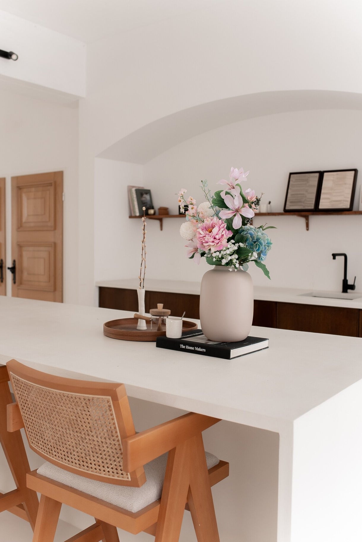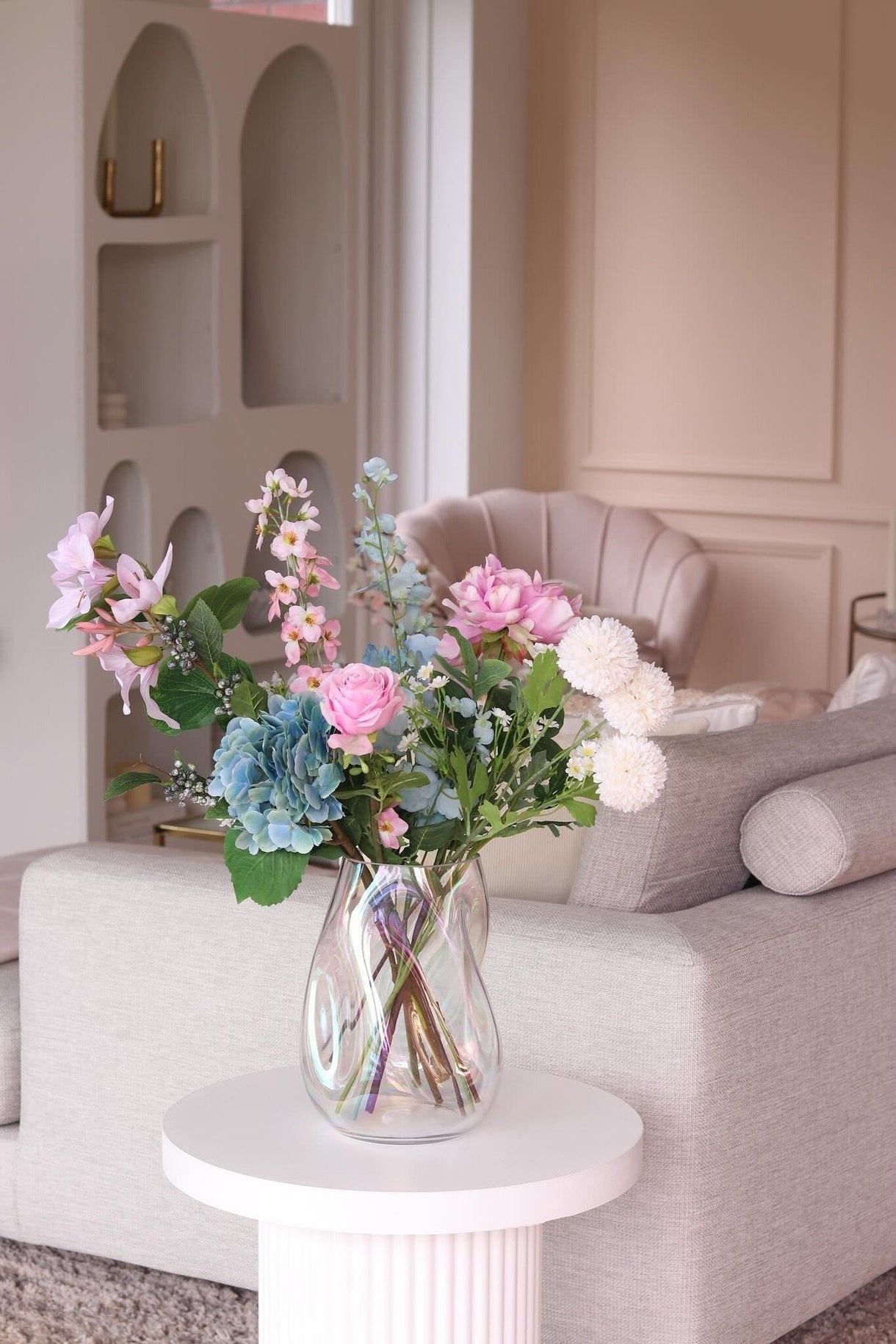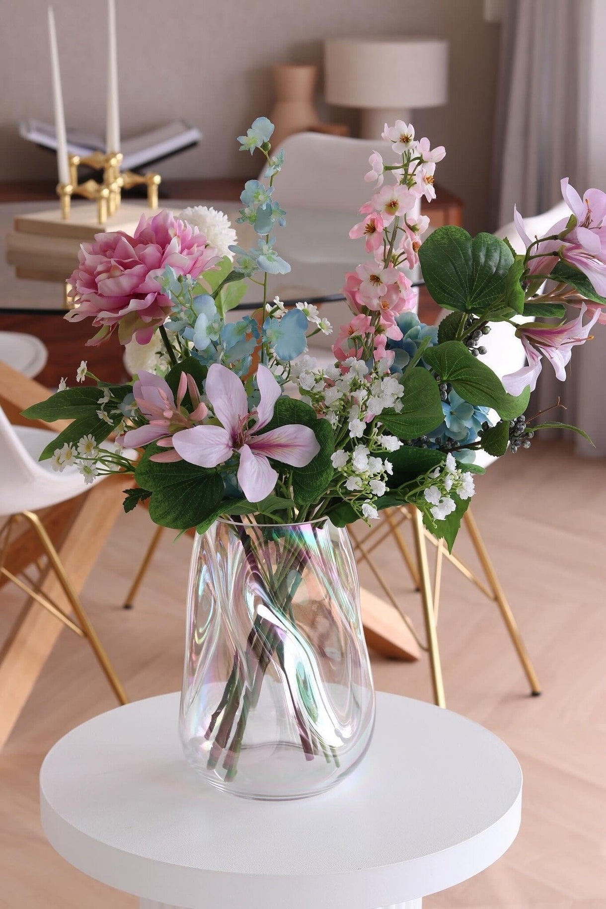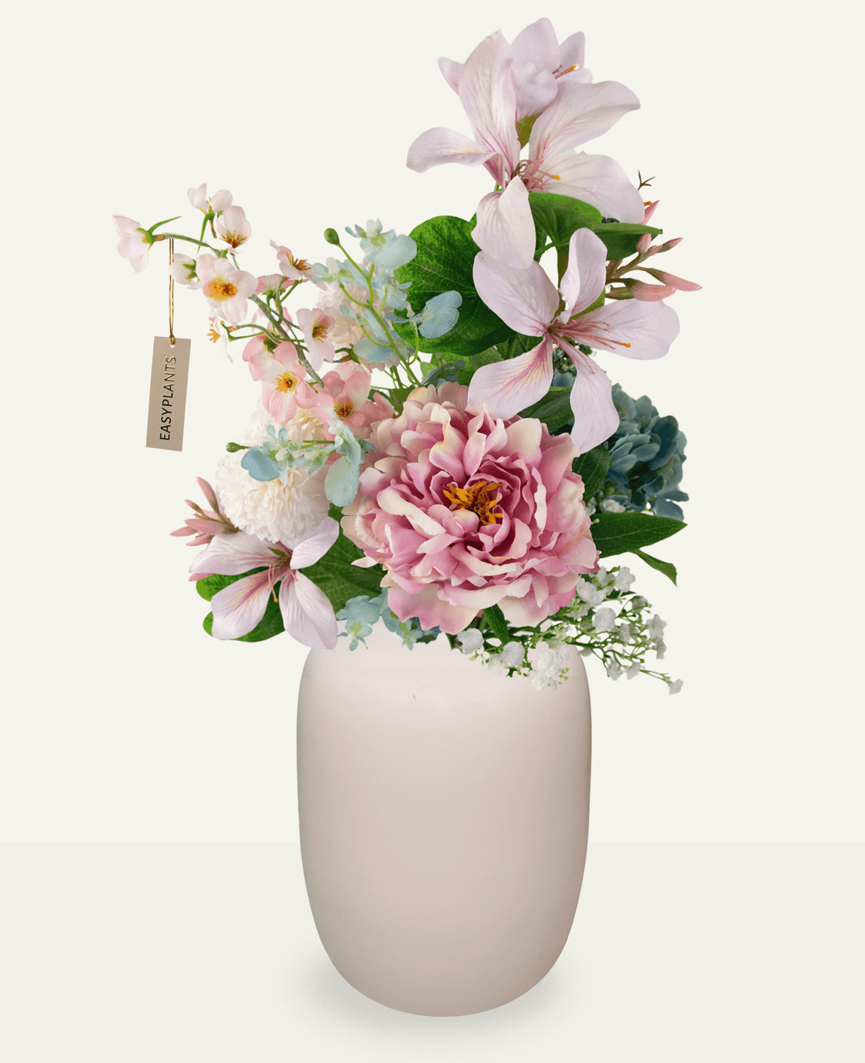 Rinnova il tuo spazio con la splendida composizione di fiori finti Sweet Spirit, un'aggiunta perfetta per ogni ambiente della tua casa o ufficio. Con una lunghezza di 60 cm, questa elegante composizione è progettata per portare un tocco di freschezza e vivacità senza la necessità di manutenzione.