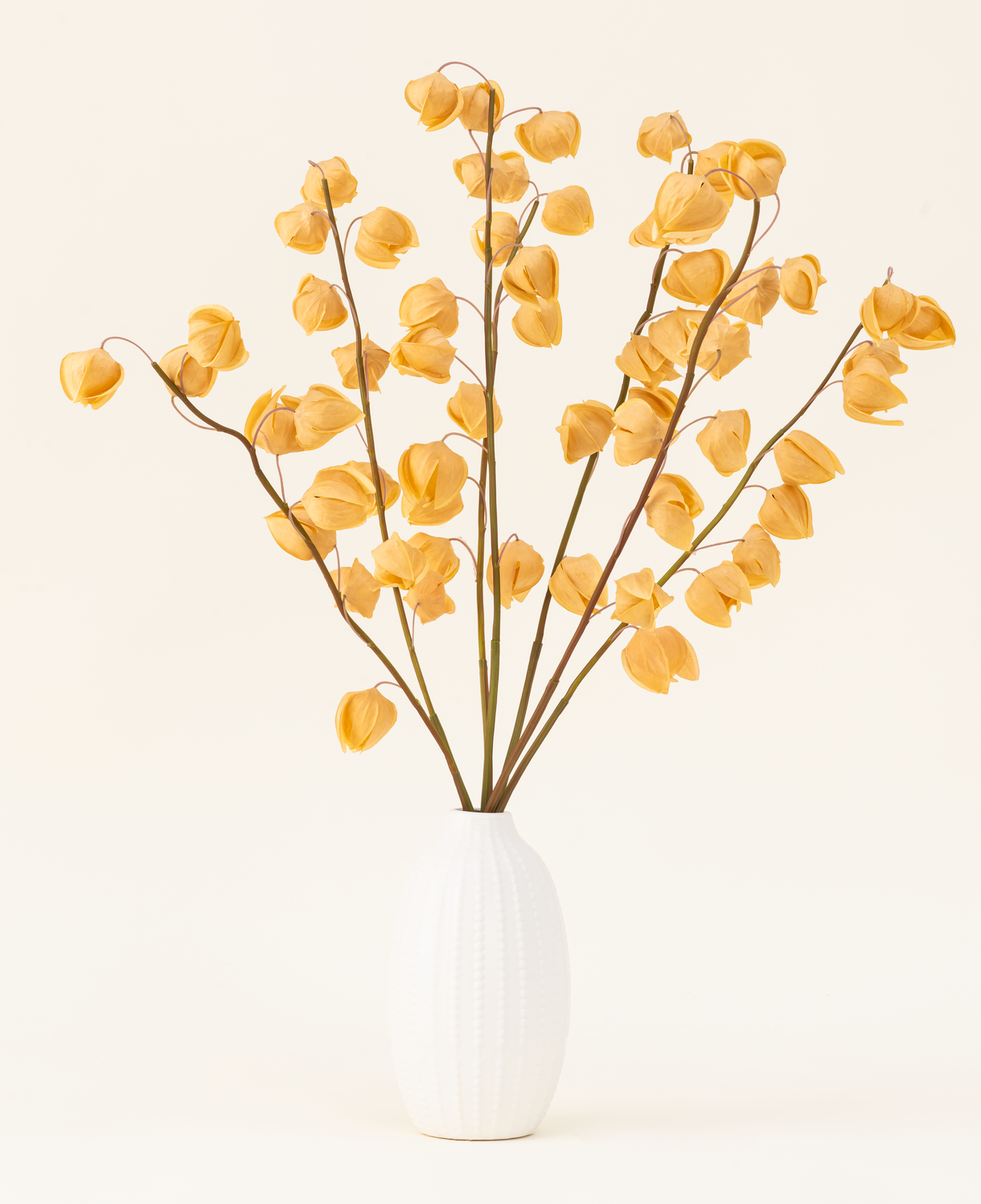 Portate la calda atmosfera dell'autunno in casa vostra con questo suggestivo bouquet di sette fiori artificiali in seta: il Physalis Lampion in una profonda tonalità naturale di marrone. I caratteristici calici a forma di lampione, combinati con rami dalle forme sottili, conferiscono a questo bouquet un aspetto unico e stagionale - perfetto per un angolo accogliente in casa, per un vaso di terracotta o come accento decorativo su una tavola autunnale.
