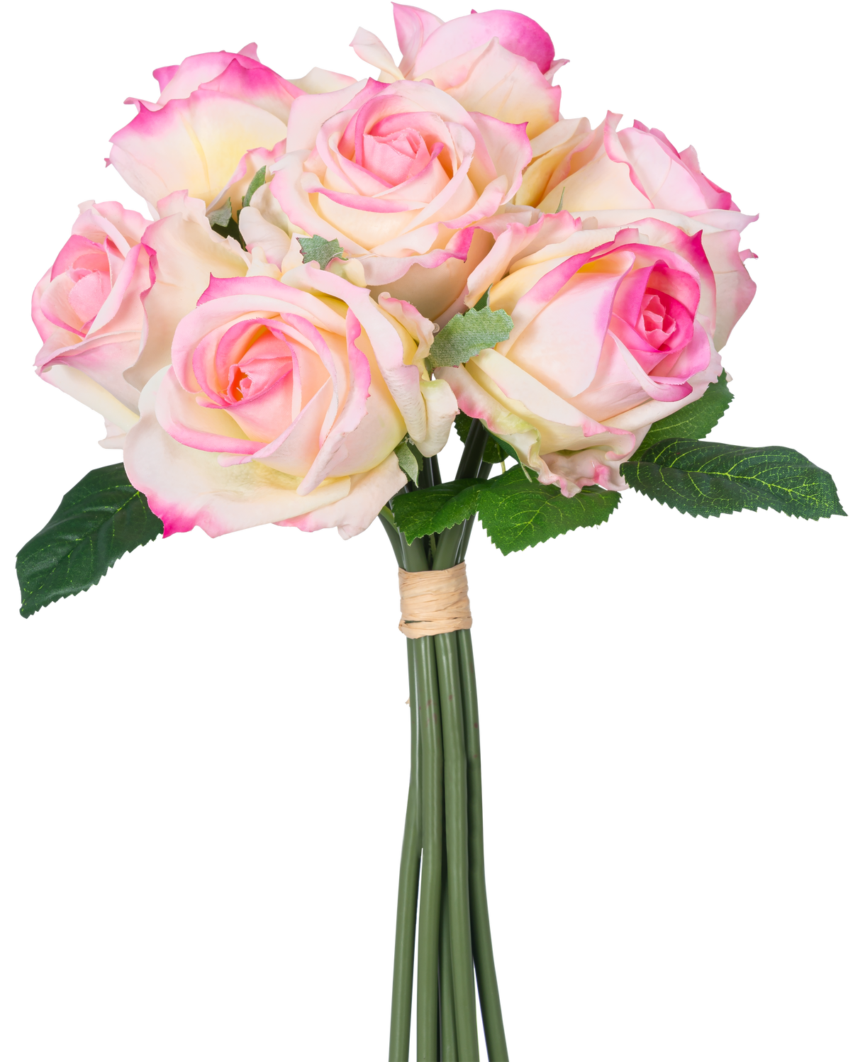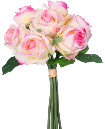 Bouquet di rose artificiali 7 rose Real Touch Crema/Rosa 30 cm