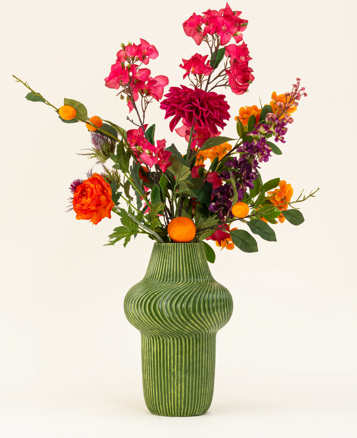 Porta l'estate in casa con il Sunset Fiesta Bouquet di seta - un bouquet colorato e allegro che trasuda calore e vivacità. Questo bouquet di lusso è stato messo insieme dai nostri fioristi esperti e contiene un bellissimo mix di lati di fiori di alta qualità e una serie di fiori touchici che sono quasi indistinguibili dal vero.