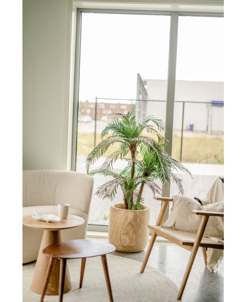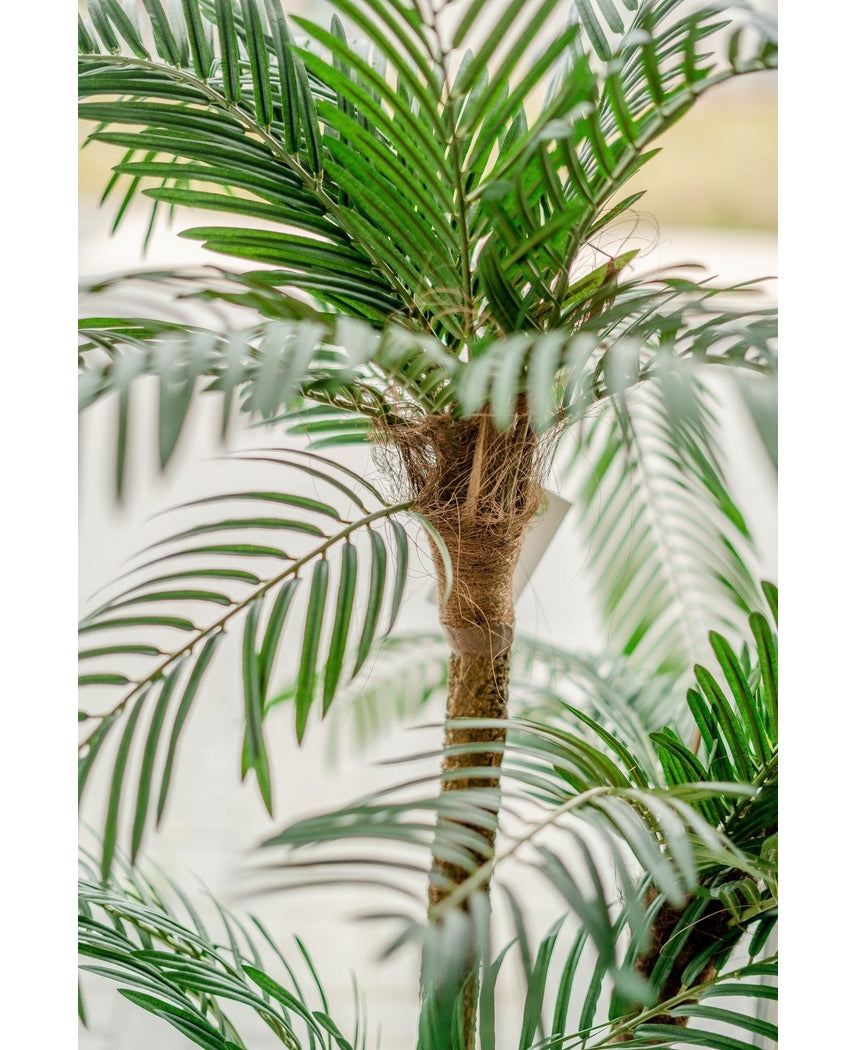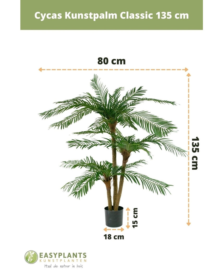 Scopri l'eleganza senza tempo della palma Cycas, un'aggiunta perfetta per ogni ambiente interno. Con la sua altezza di 135 cm, questa palma artificiale è progettata per impressionare e arricchire i tuoi spazi.