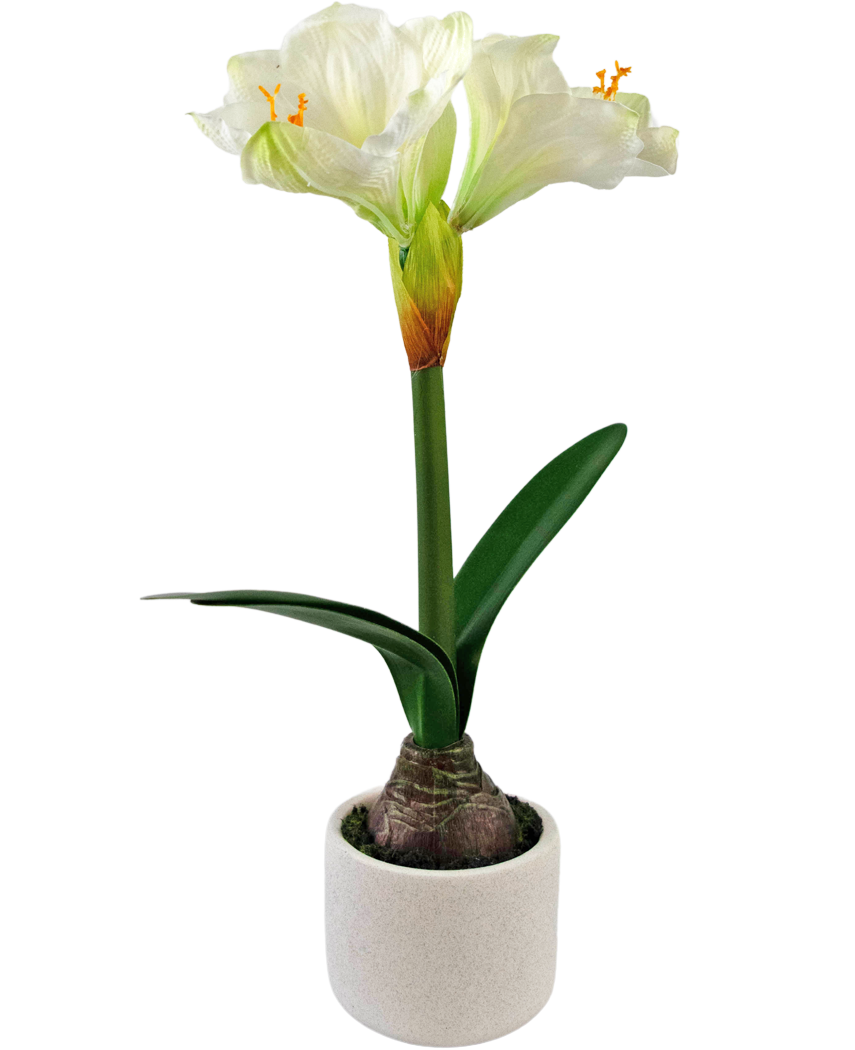 Scopri la bellezza senza tempo del Fiore artificiale Amaryllis bianco, un'elegante aggiunta a qualsiasi decorazione d'interni. Con i suoi 48 cm di altezza, questo fiore rappresenta la perfezione e la freschezza della natura, senza la necessità di manutenzione.