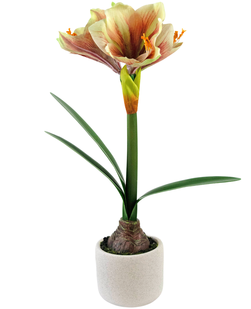 Scopri l'eleganza senza tempo del Fiore artificiale Amaryllis in una meravigliosa combinazione di rosso e giallo. Con un'altezza di 48 cm, questo fiore è perfetto per aggiungere un tocco di colore e raffinatezza a qualsiasi ambiente.