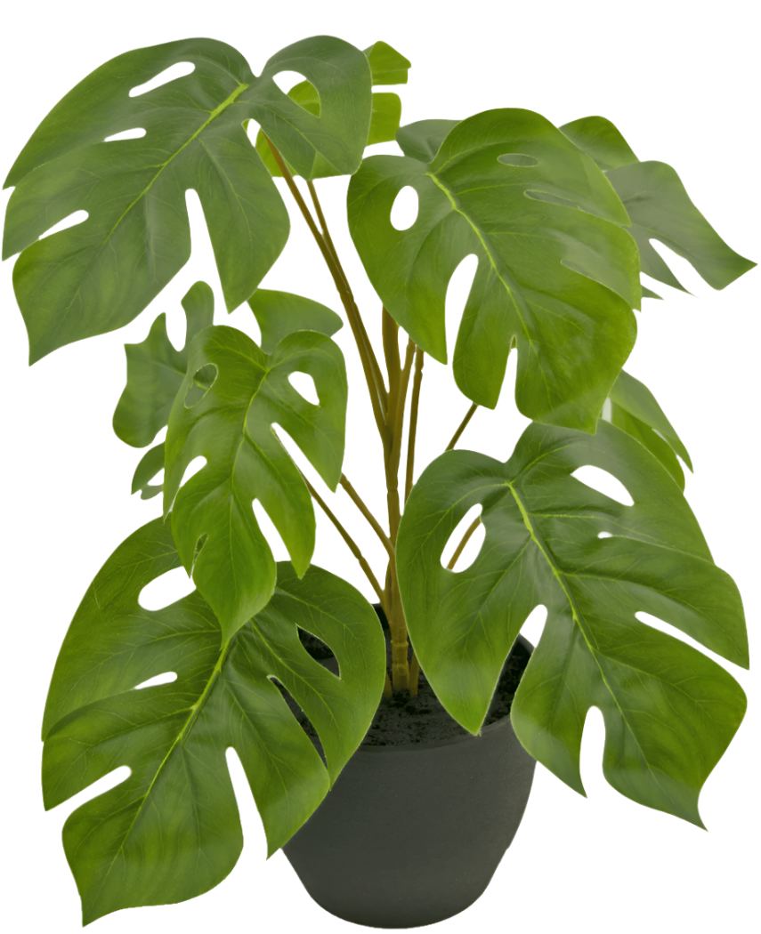 Monstera Artificiale 40 cm in Vaso Ornamentale Nero