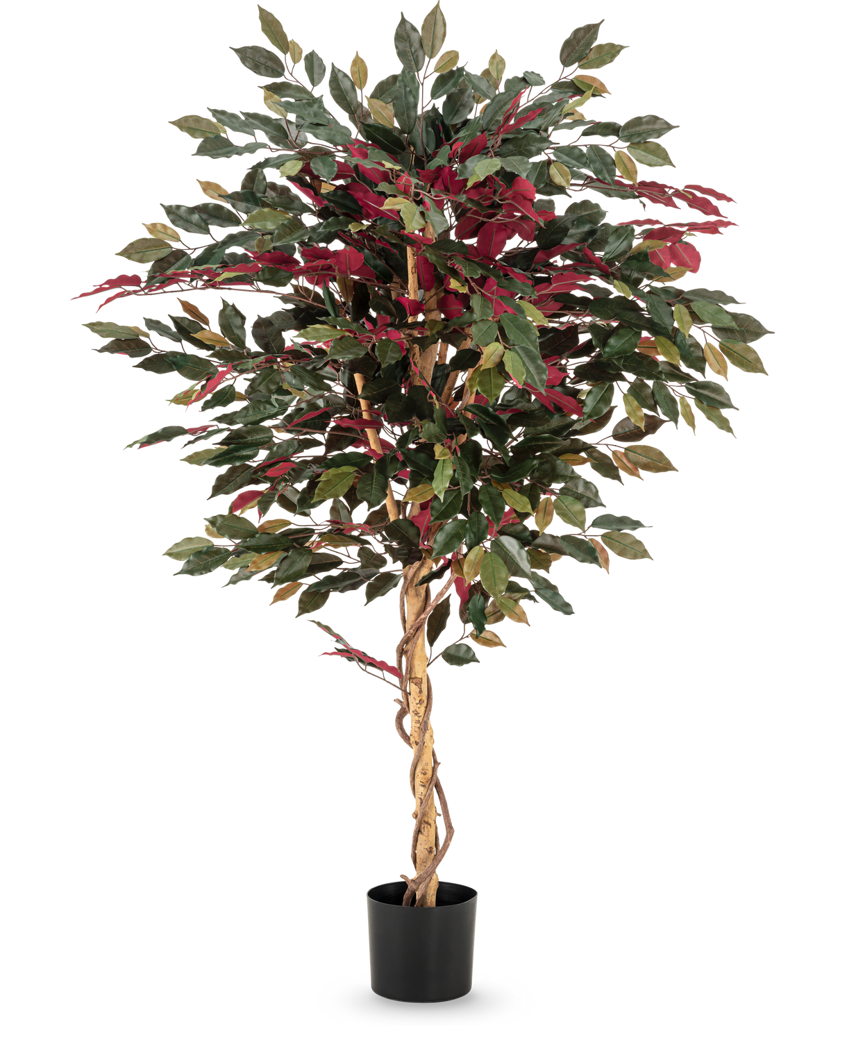 Originario dell'Africa, il ficus è una pianta d'appartamento molto popolare, soprattutto per le sue numerose varietà e dimensioni. Questo ficus verde/rosso aggiunge atmosfera a qualsiasi ambiente, come molti dei nostri ficus. Questa pianta di ficus artificiale è caratterizzata da un intero mazzo di foglie che variano nei colori verde e rosso, dando alla pianta un aspetto naturale. Il ficus ha anche un vero stelo di legno ed è adatto a qualsiasi ambiente interno.