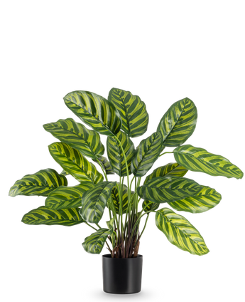 Scopri la bellezza senza tempo della Calathea Makoyana, un'elegante pianta artificiale alta 60 cm che porta un tocco di natura nel tuo spazio. Questa pianta d'appartamento è perfetta per chi desidera la freschezza delle piante senza le difficoltà di cura.